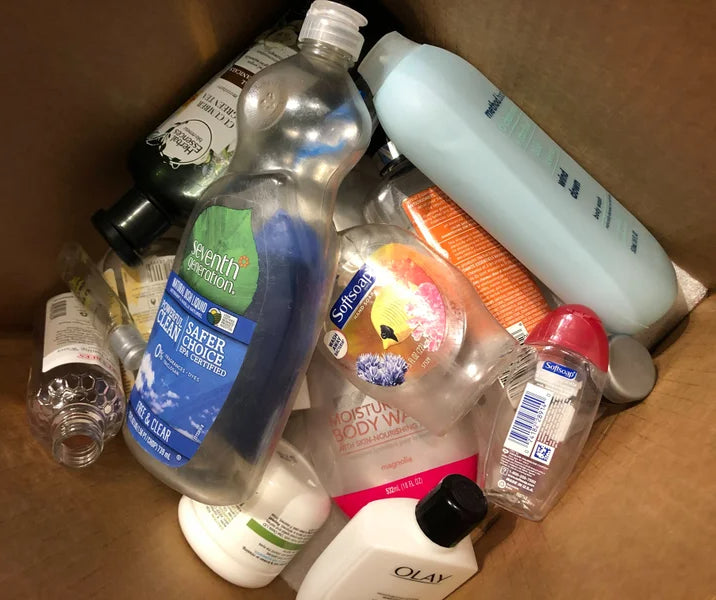 This photo is my personal plastic toiletry trash for one year. Now multiply that by 30+ years. By reusing these bottles through refilling, I can avoid adding over 500 plastic bottles into our ecosystem in my lifetime!