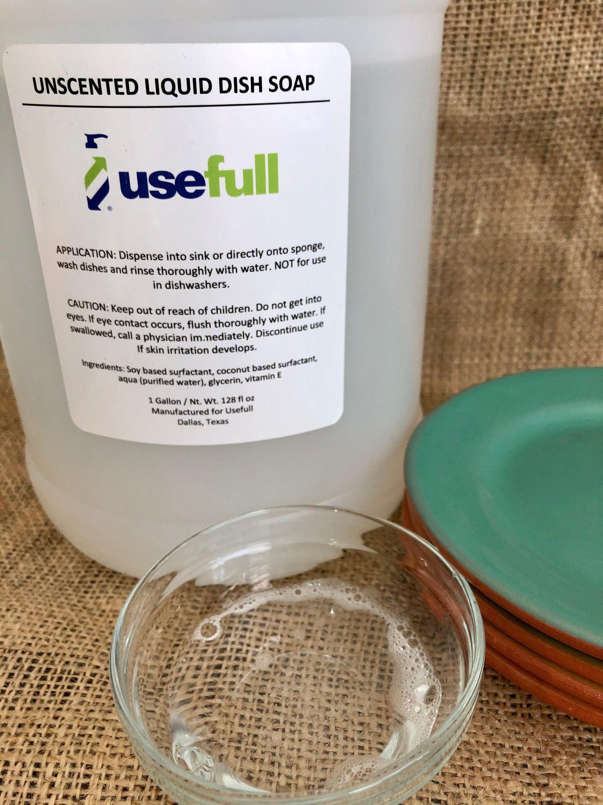 Made with coconut and soy-based surfactant (surface acting agent), this naturally derived dish soap infused with Vitamin E is tough on grime and oil but not harsh for your hands.