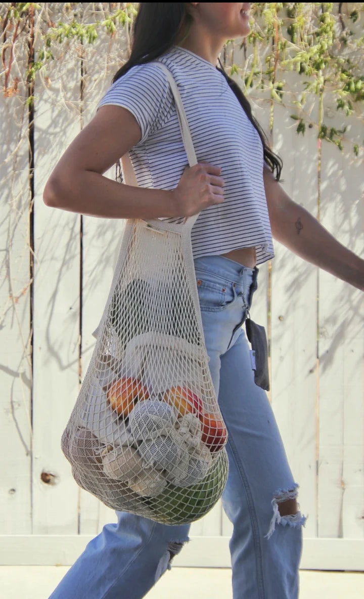 These extra large market bags are great for grocery hauls or farmers markets. They hold up to 45 lbs. and can be used for carrying a variety of things, like toys and laundry. Made with organic cotton, they are durable, washable, and can be used for a really long time, eliminating countless plastic bags.
